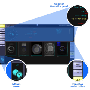 Múltiples herramientas de inspección en una máquina motorizadas cámaras con reposicionamiento automático para asegurar la repetibilidad no hay ajustes ópticos y/o mecánicos necesarios diseño de la máquina permite un fácil acceso a todas las estaciones de inspección hasta la altura de la botella de 600m m con el lector del número del molde de la opción del XXL conveniente para todos los códigos de molde estándar (alfanumérico, códigos del punto, códigos del punto del talón, códigos de AGR)